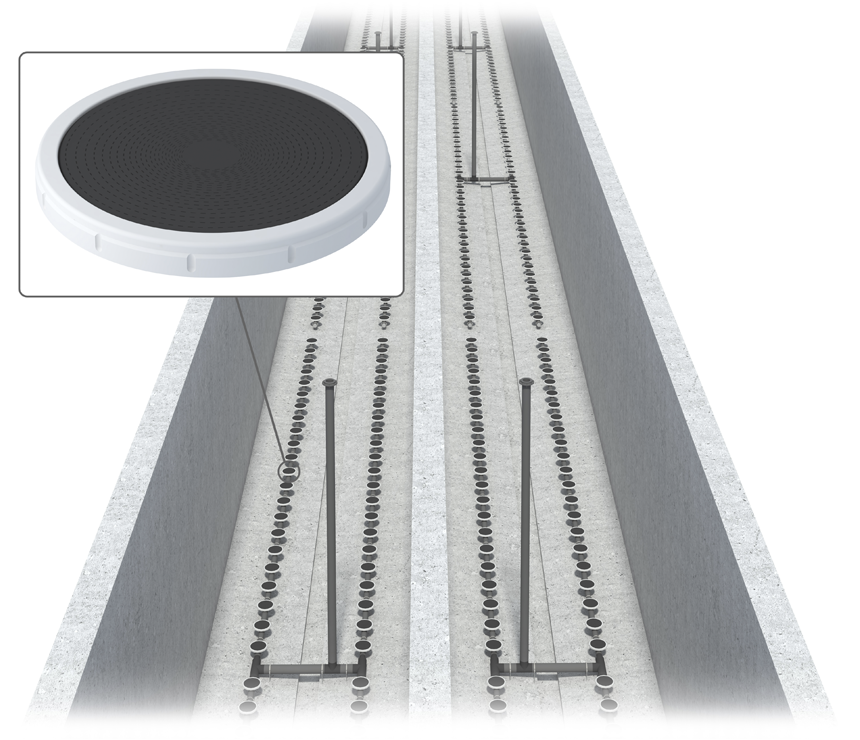 Мелкодисперсная подача воздуха способствует эффективному насыщению воды кислородом и улучшает биологическую очистку.