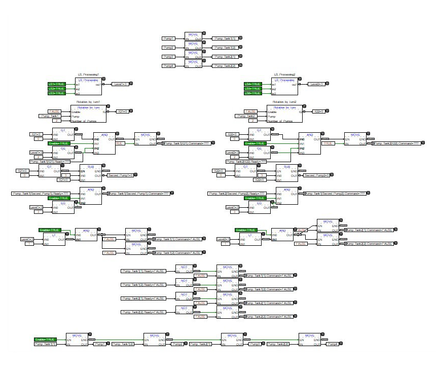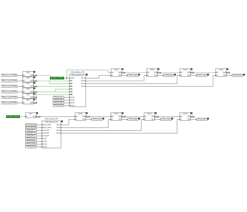 Контроль давления в трубопроводе: при отклонении от нормы ПЛК активирует насосы или при необходимости перекрывает заслонки, предотвращая аварию.
