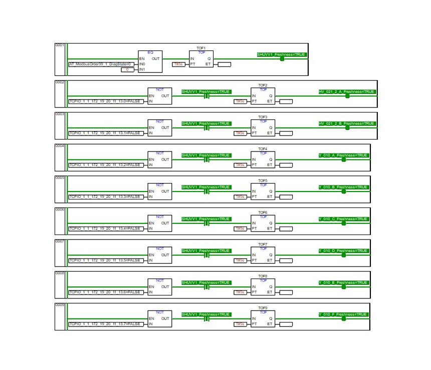 Аварийная остановка: в случае утечки газа или перегрева ПЛК отключает оборудование по заданному алгоритму, минимизируя риски.