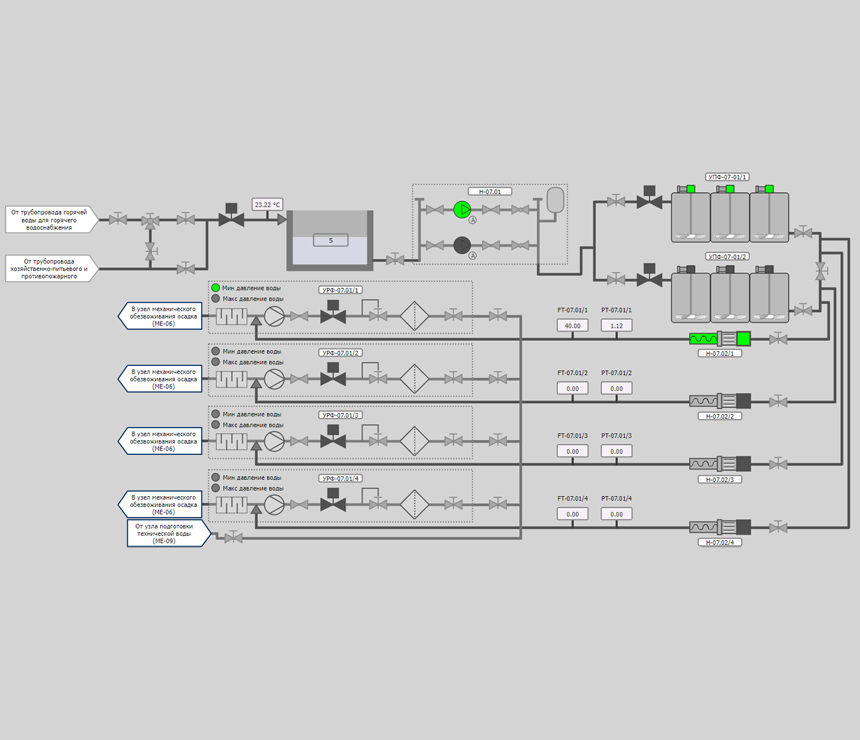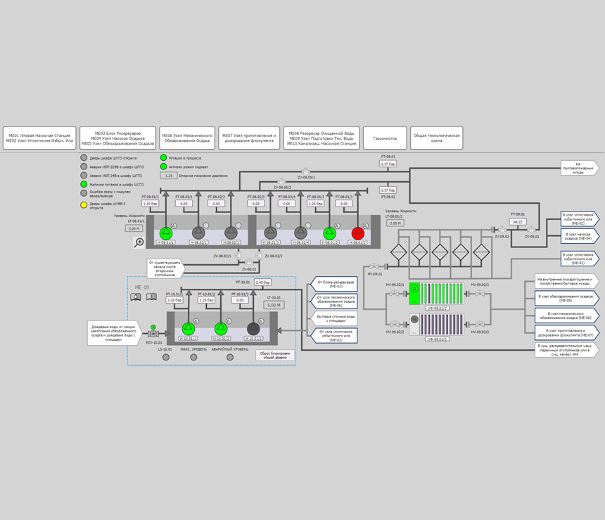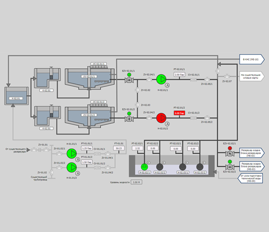 Контроль — система обеспечивает возможность управления технологическими процессами, включая запуск и остановку оборудования, регулирование параметров и другие действия.